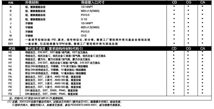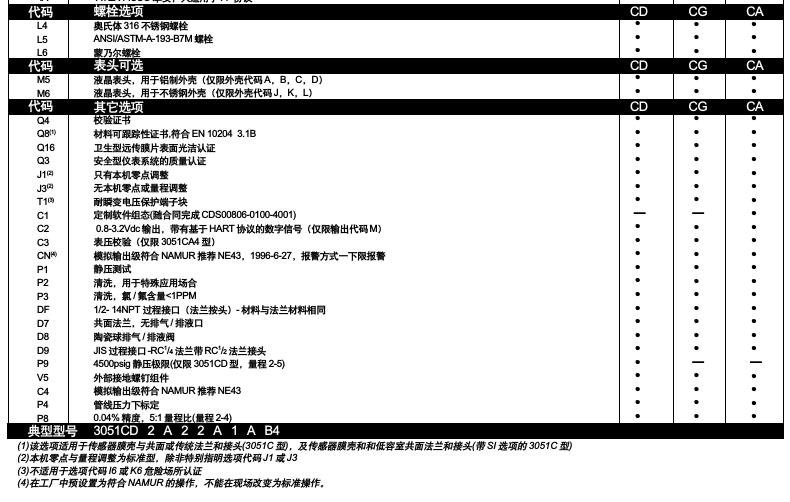 羅斯蒙特3051CD選型列表: