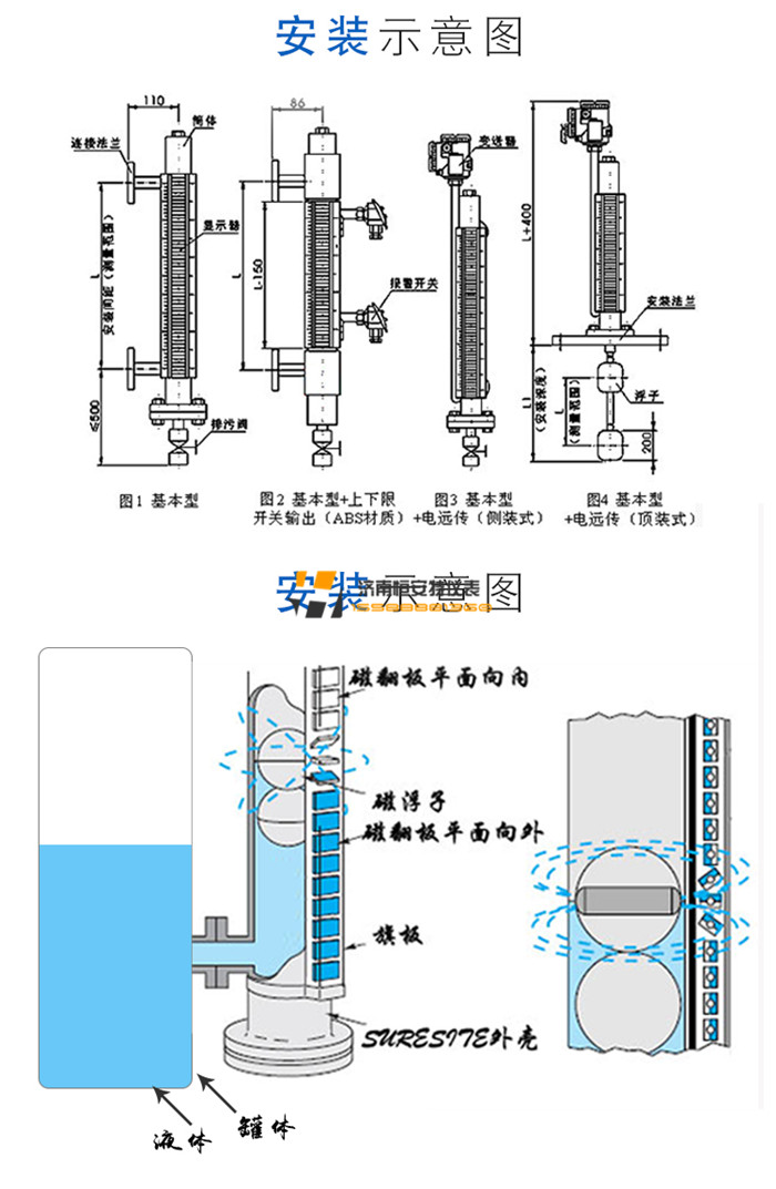 5.磁翻板液位計安裝示意圖